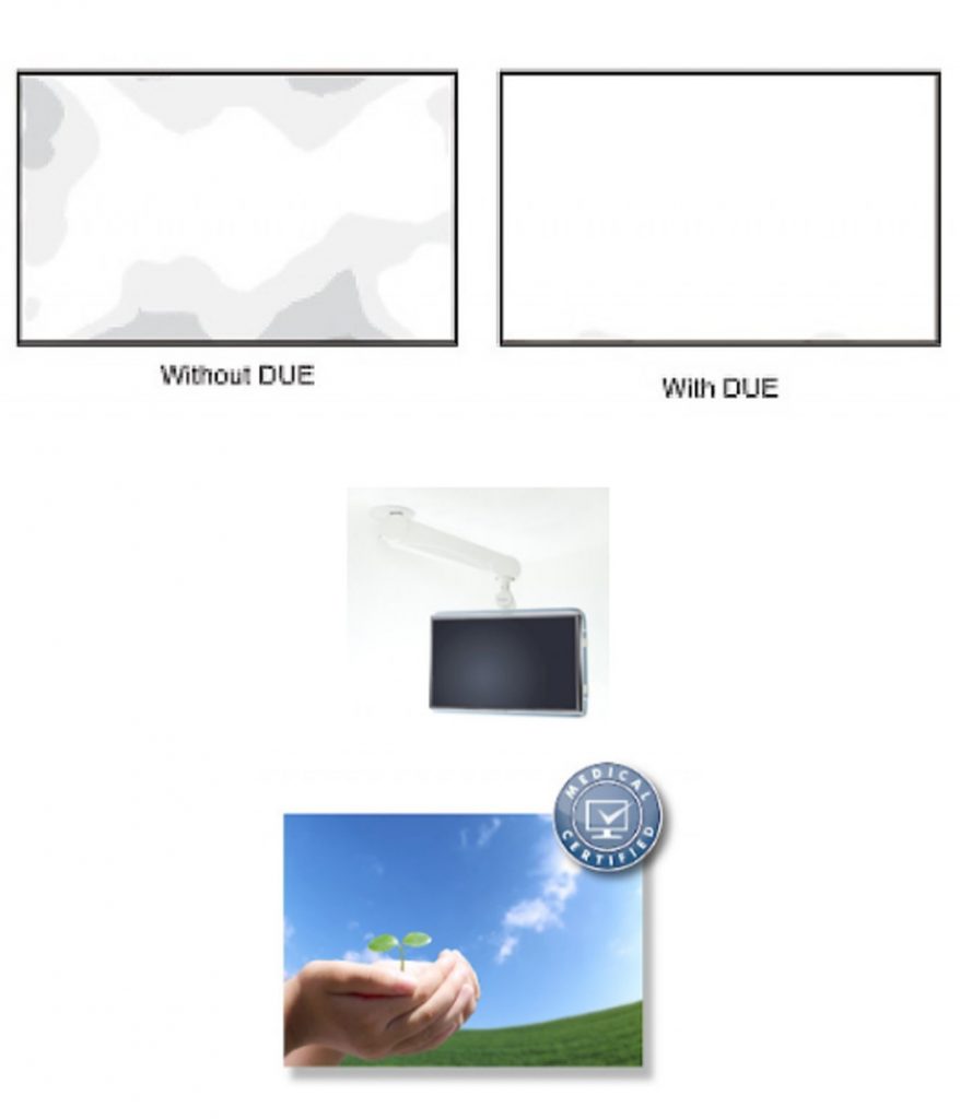 The Digital Uniformity Equalizer (DUE) function provides optimum backlight luminance uniformity which is considered difficult to attain due to the characteristics of LCD monitors, especially with larger screen sizes.