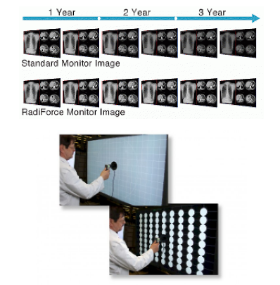 The monitor is calibrated to comply with DICOM Part 14 to offer rendering consistency over time.